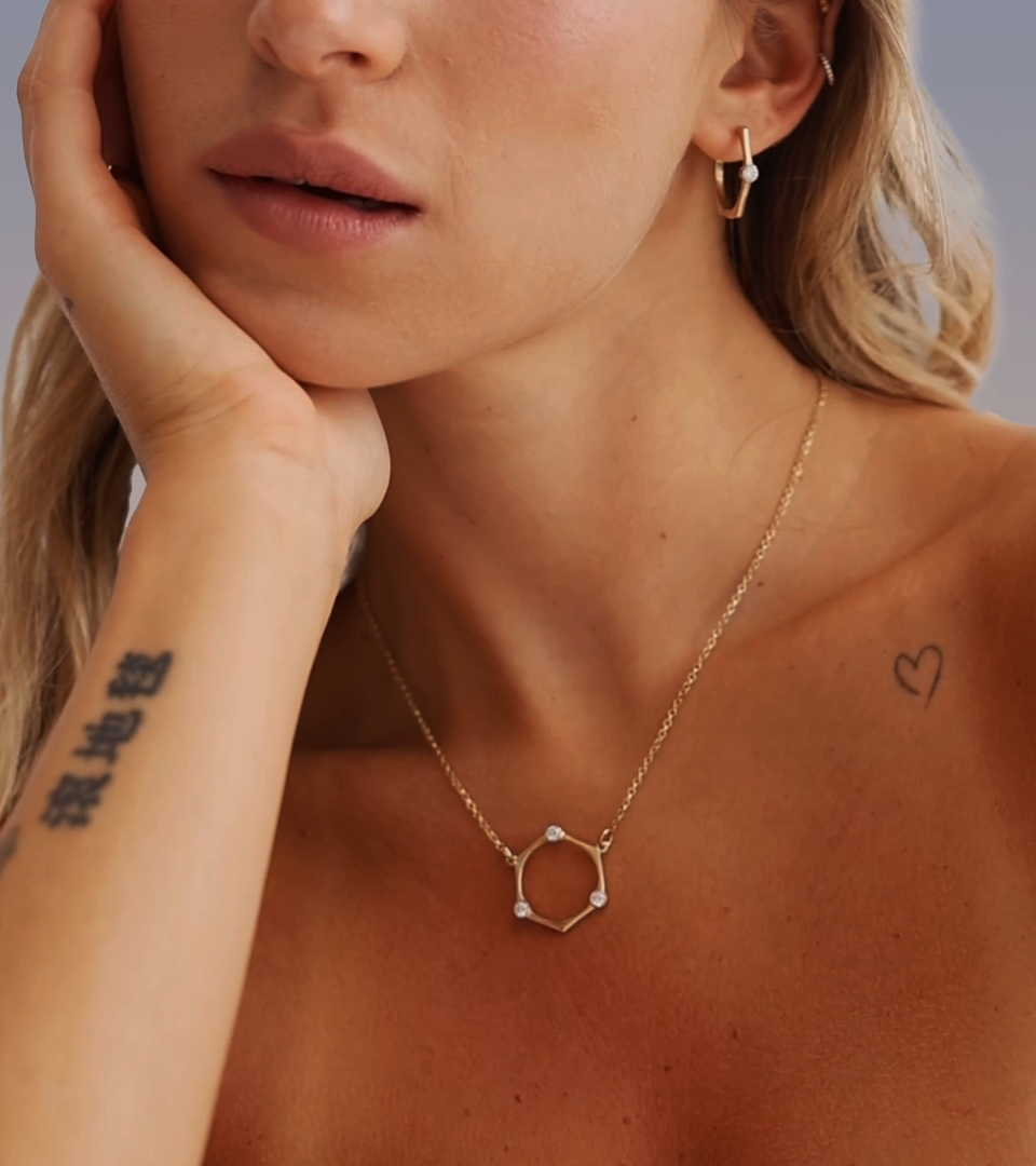 NEW INתליון HEX גיאומטריזהב 18K, משובץ יהלומי GIA טבעיים5200 ₪