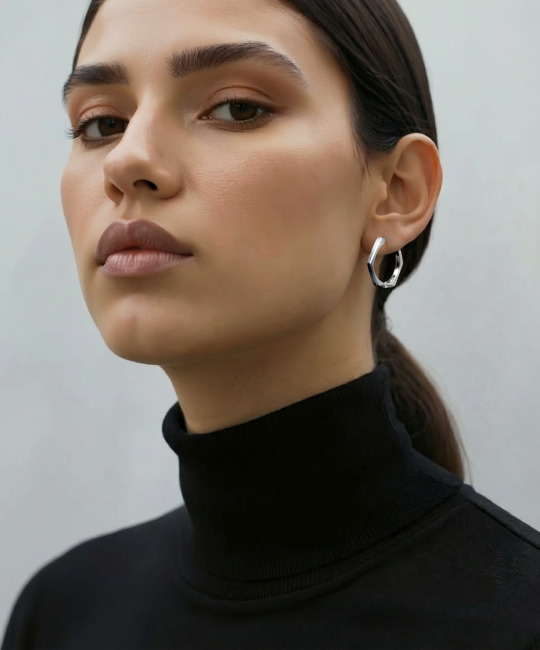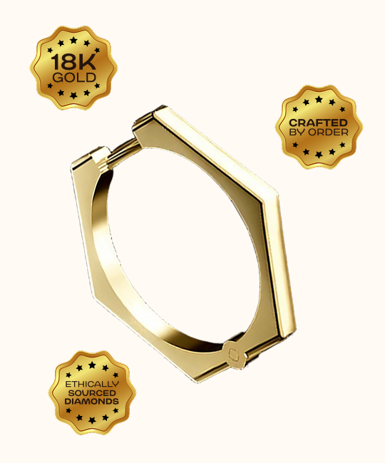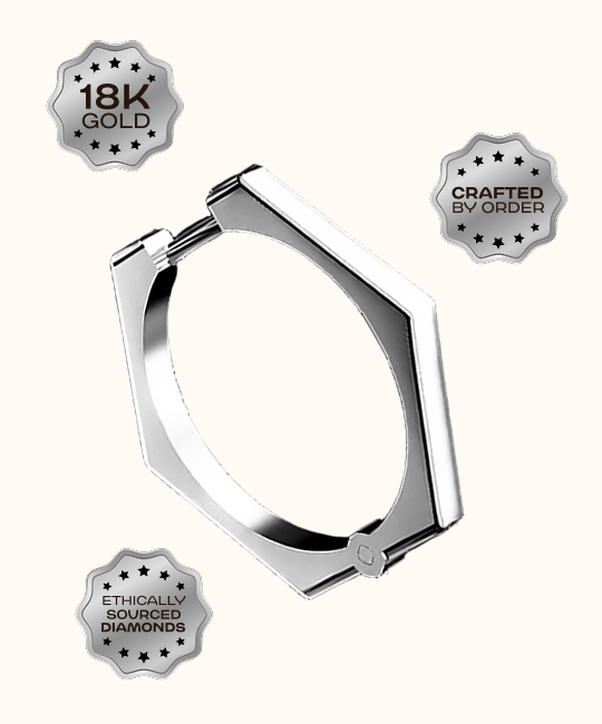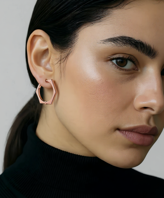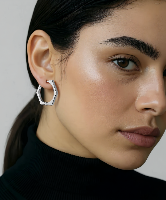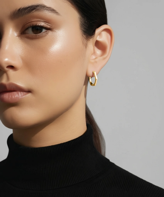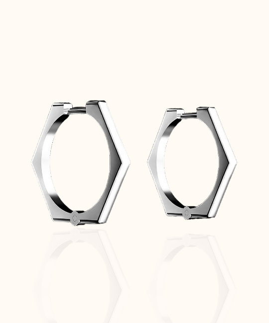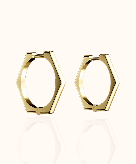 עגילי HEX הם דוגמה לאיזון - זוויתיים, מדויקים וונועזים. הצללית הנקייה שלהם בעלת שישה פאות הופכת לקישוט נועז שממסגר את הפנים והולך איתך לכל מקום.