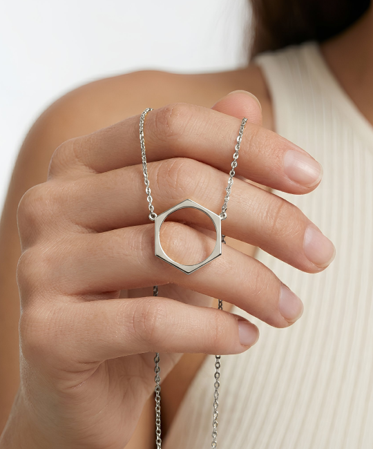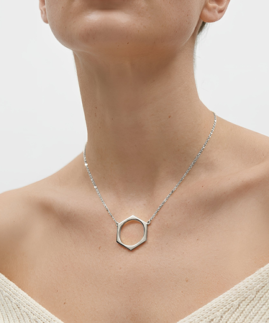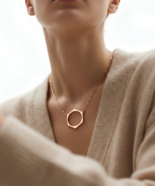 תליון Hex הוא גיאומטריה מזוקקת - מסגרת מושלמת בעלת שישה צדדים התלויה בעוצמה שקטה. עשוי מזהב מלא 18 קראט, מישוריו החדים מספרים סיפור נועז של בחירה וייחודיות.