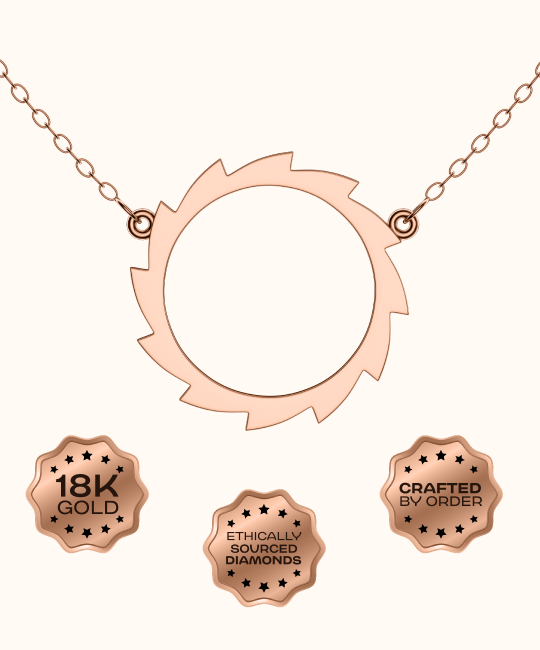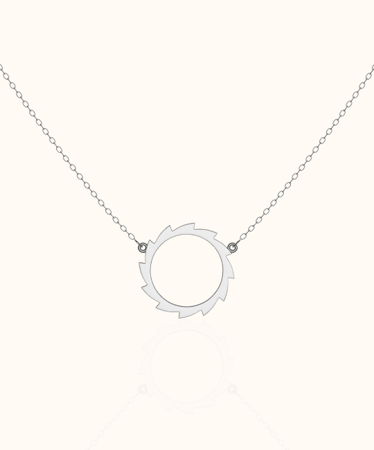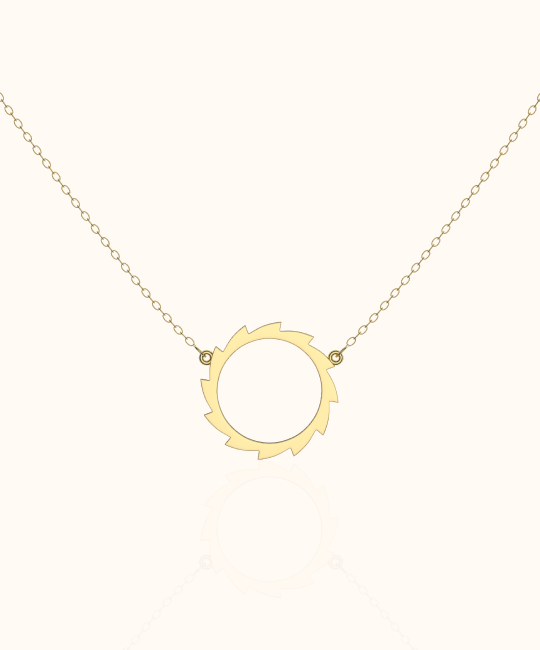 תליון SUN הוא תליון זהוב קפוא באמצע התפרצות. קווים חדים קורנים ממרכזו, עם זוויות חדות כך שאור מתפזר כשאתן זזות. כשעונדים אותו הוא פחות קישוט ויותר פיסה קטנה של אור יום, שנבנתה לזרוח מתוך כוונה.
